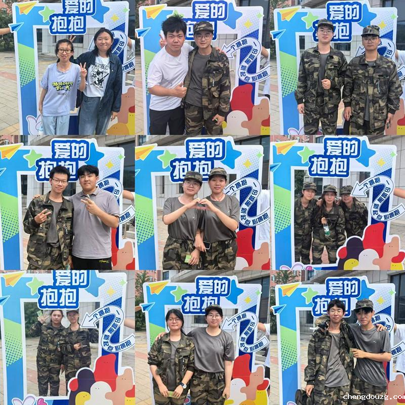 爱的抱抱打卡处,新生与老师、学长学姐或志愿者拥抱,用温暖的方式缓解了初来乍到的紧张感。